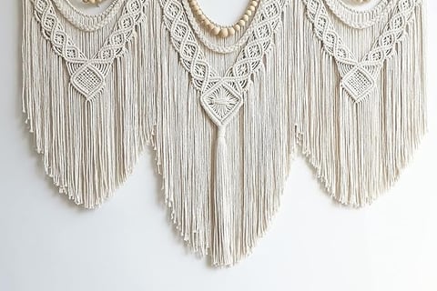 Macramé pieces bring a handmade, bohemian touch to your walls. Hang a large macramé tapestry above your sofa or smaller pieces around the room for a cozy, artistic vibe. The intricate knots and natural fibers add texture and warmth.
