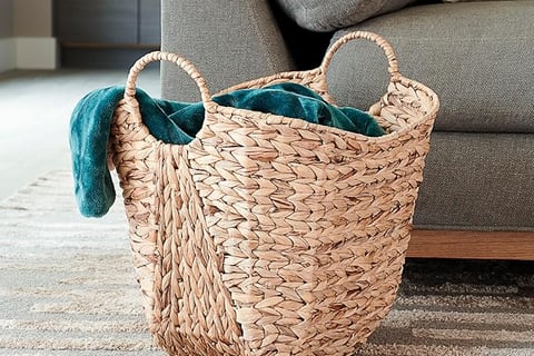 Use woven baskets for both storage and decor—tuck away blankets, store magazines, or hang them on the wall as art. Their natural texture complements the farmhouse aesthetic while adding a boho touch.