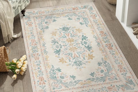 A patterned rug can anchor your space and add a pop of personality. Look for traditional designs like florals, geometrics, or stripes in soft, muted tones. It’s an easy way to tie the room together.