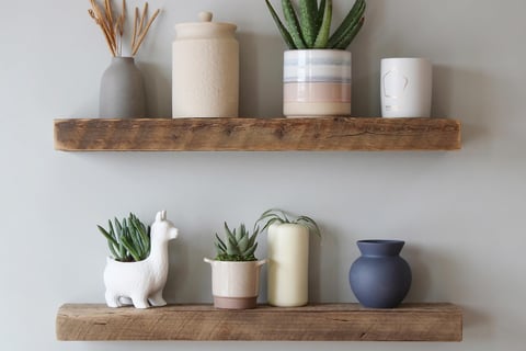 Display your favorite dishes, books, or collectibles on open shelves for a casual, lived-in look. Keep it tidy but not overly curated—cottage style is all about effortless charm. Add a few trailing plants for a fresh, natural touch.